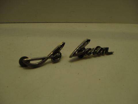 1964-67 Imperial "LeBaron" nameplate, excellent used condition. All mounting pins and nuts intact, chrome is beautiful.