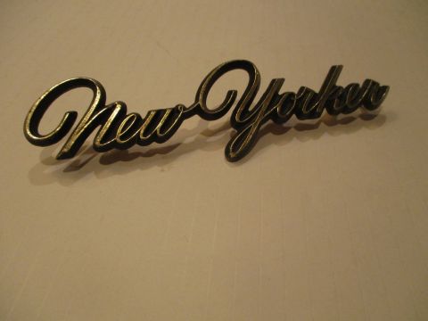 1976-78 Chrysler New Yorker nameplate, nice used condition. Fits on front fender.
