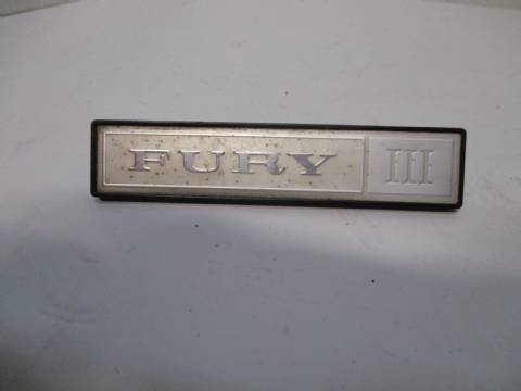1972-73 Plymouth Fury III nameplate, decent used condition, fits on dashpad.
