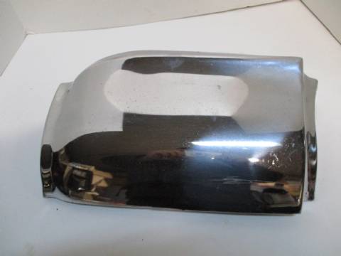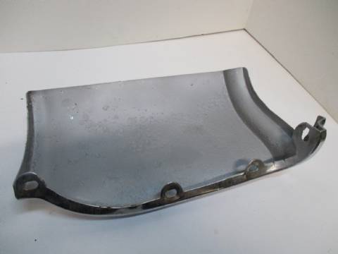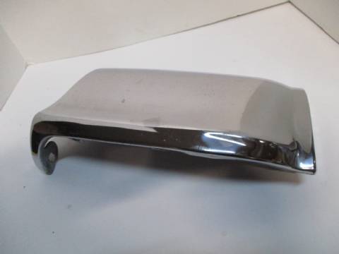 1961-63 Imperial right front lower fender moulding, located ahead of wheel, good used condition, shiny chrome but has scuffs and blemishes with one minor dent.