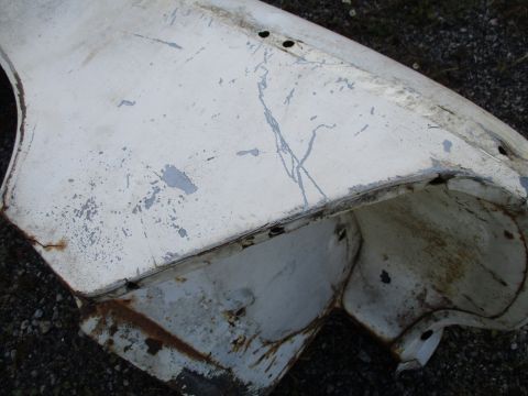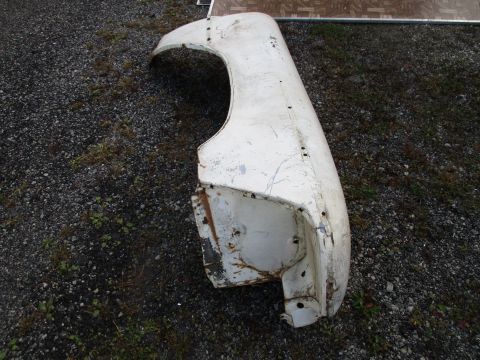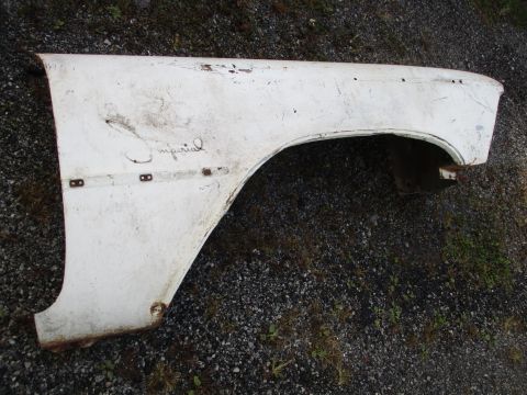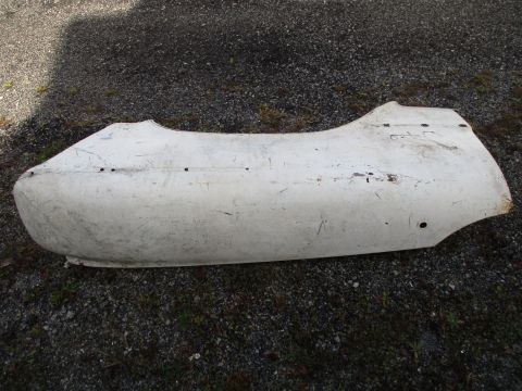 1957-58 Imperial right fender, good used condition. Piece is solid with no rot, has some old damage repair ahead of wheel.