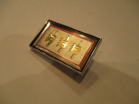 1967 Chrysler Newport Custom medallion, excellent used condition, both mounting pins intact. Fits 2-door models (mounts on roof) and 4-door models (mounts on front fender).