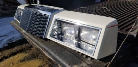 Complete Header panel assembly From a 1985 Chrysler Lebaron. Excellent condition, from a low mileage car. Excellent chrome. Will also fit 1983-87 Front wheel drive New Yorker, but the appearance of the grille differs.