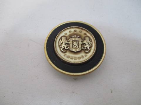 1975-77 Chrysler Cordoba steering wheel center ornament, NOS, has some scratches in black paint, fits all without tilt and with 3 spoke steering wheel.