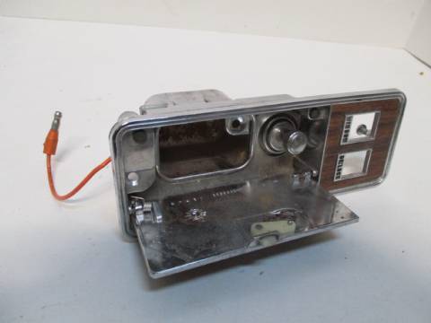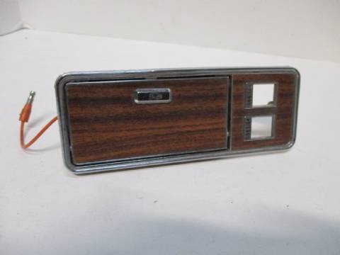 1976-78 Chrysler New Yorker window switch bezel with ashtray and lighter, excellent used condition, very nice chrome and woodgrain, fits on right front door in cars with power locks. No switches included.