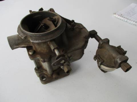 1957-58 Plymouth, 1957 DeSoto, and 1957 Chrysler carburetor, used condition, with filter assembly, clean and moves freely.