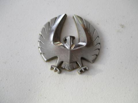 1964 & 1966 Imperial Lebaron C-pillar medallion, fair used condition, includes gold backing, both mounting pins broken.