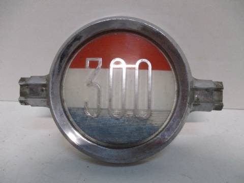 1962 Chrysler 300 quarter panel medallion, fits either right or left, fair chrome and decent medallion, missing lower mounting pin.