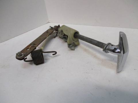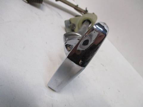 1957-59 Chrysler, DeSoto, Dodge, and Plymouth parking brake handle assembly, nice used condition, has chromed metal handle in nice condition, plastic cover piece is broken.