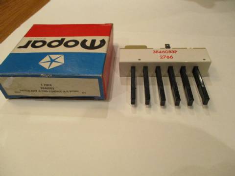 1974-78 Chrysler, Dodge, and Plymouth C-Body (without ATC), 1974-75 Imperial (without ATC), and 1975-78 Chrysler, Dodge, and Plymouth B-Body heater and A/C pushbutton switch assembly, NOS.