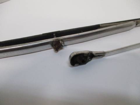 1961 Imperial pair of windshield wiper arms, nice condition with original blades, rubber blade holder on left arm is broken.