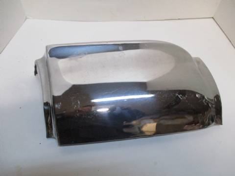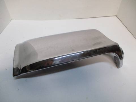 1961-63 Imperial left front lower fender moulding, located ahead of wheel, good used condition, shiny chrome but has scuffs and blemishes, no dings or dents.