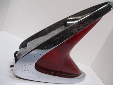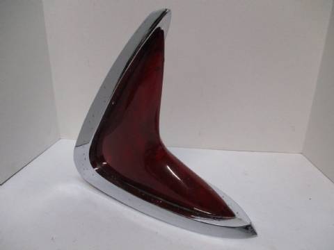 1960 Chrysler left taillight assembly, good used condition. Lens is not cracked, has good color, and has a few scratches. Chrome has some pitting. Fits all models except wagons.