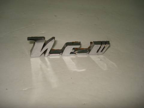 1956 New Yorker nameplate "New", nice chrome, missing one pin.
