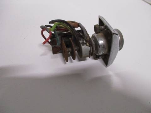 1965-66 Plymouth Fury rear speaker and reverberator switch and bezel, used condition, nice bezel and switch looks okay, but wires have been cut.