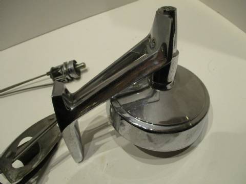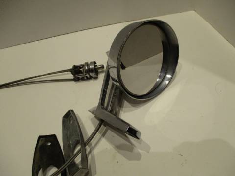 1963-64 Chrysler, 1963-64 Dodge 880 left remote mirror, complete with mounting spacer and gasket, chrome has speckling.