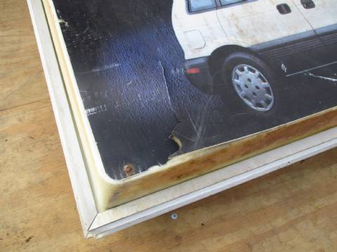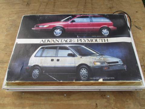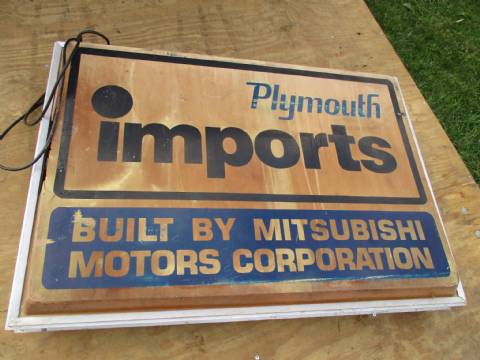 Plymouth Imports lighted dealer sign, plastic has some damage.