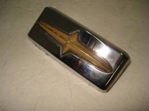 1961 Chrysler New Yorker quarter panel ornament, good used condition, not pitted, mounting pins and nuts intact, fits either left or right.