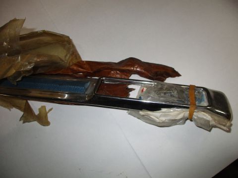 1976-79 Dodge Aspen and Plymouth Volare right front fender moulding, NOS, with blue insert. Includes clip package.