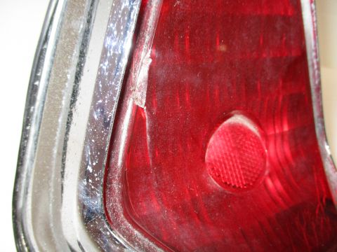 1964 Chrysler left taillight assembly, used condition. Chrome is pitted and lens has a crack.