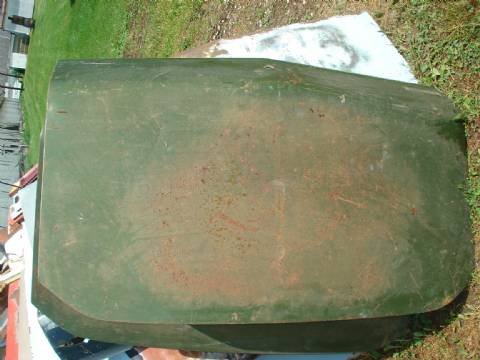 1970-72 Dodge Dart and Plymouth Scamp trunklid, Arizona rust-free lip, surface rust on outside, dings and dents, has wing templates.