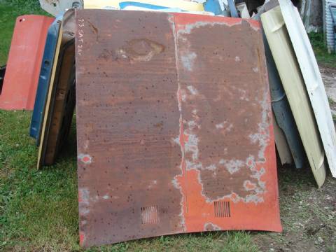 1973-74 Plymouth Satellite hood, Arizona rust-free, fits all 2 doors, has surface rust from sunbaked paint.