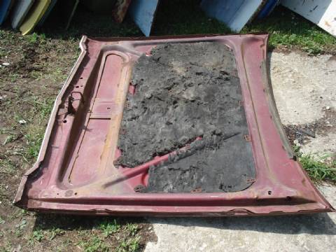 1967-69 Dodge Dart hood, clean, has damage in right front corner.