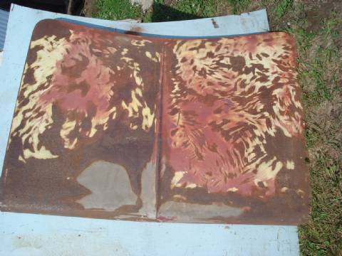 1970 Dodge Coronet trunklid, has surface rust and some lip rust.