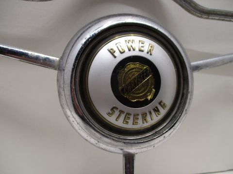 1951-54 Chrysler horn ring with center medallion, good used condition. Horn ring has some pitting, but center medallion is excellent.