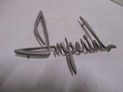 1961-63 "Imperial" nameplate, located on front fender, nice used condition. 4 mounting pins are intact.