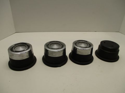 1978-90 Dodge Omni and Plymouth Horizon set of four wheel center caps, good used condition. One cap is missing chrome center.