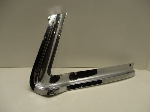 1964-65 Imperial left rear bumper outline moulding, used condition. Piece is shiny and not pitted, but upper tip is broken off. Broken piece would not be noticeable when installed.