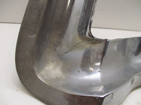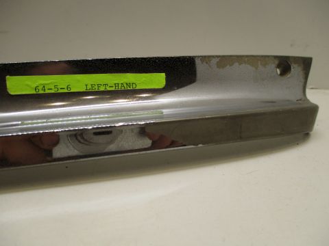 1964-65 Imperial left rear bumper outline moulding, used condition. Piece is not pitted, but has one crack and peeling chrome.