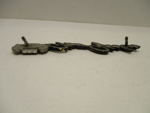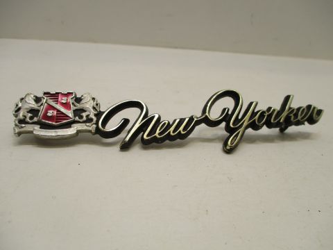 1972-73 Chrysler New Yorker nameplate, good used condition. Both mounting pins are intact, but one is bent.