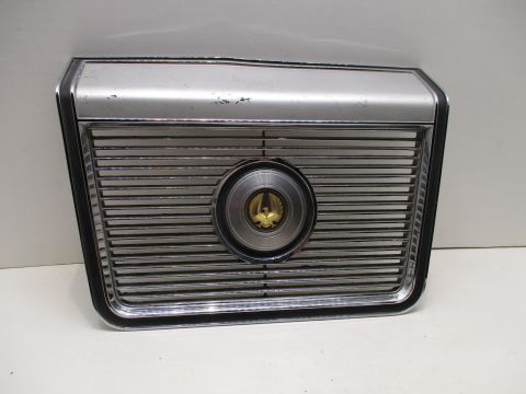 1969-73 Imperial rear seat speaker grille, nice used condition. Piece has nice chrome and is not pitted, but paint has scratches.